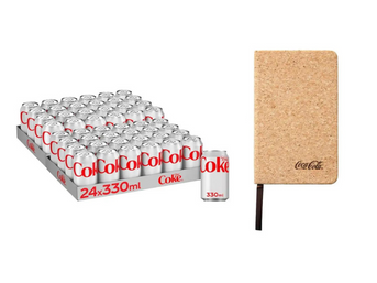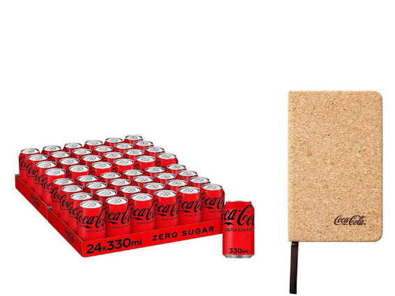 This bundle includes two packs of Coca-Cola Zero Sugar 24 x 330ml and a Coca-Cola A6 Cork Notebook.