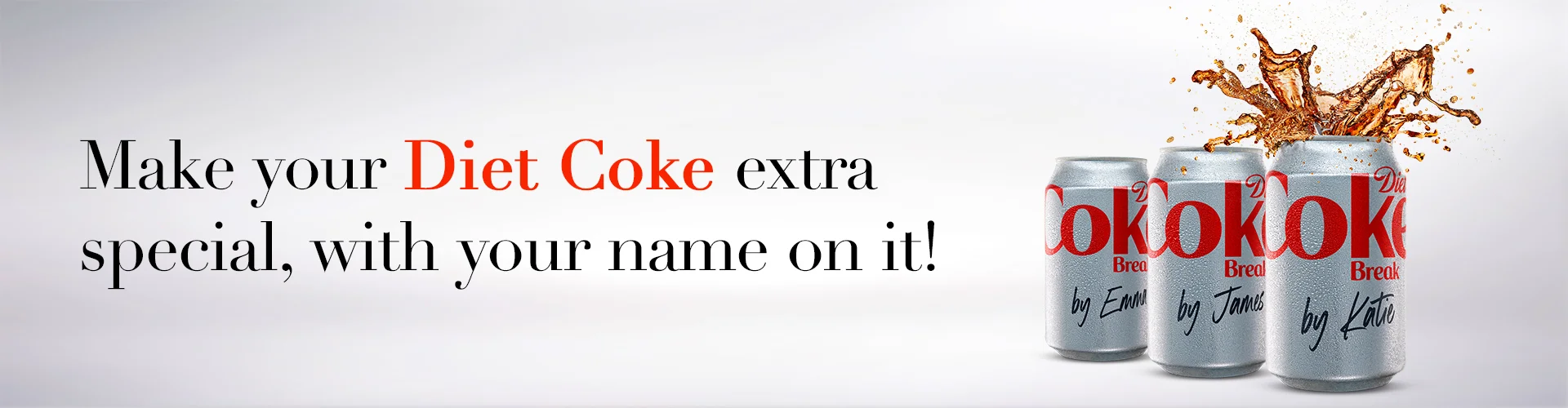 For a limited time only, you can personalise a Diet Coke can with your name or the name of someone special.